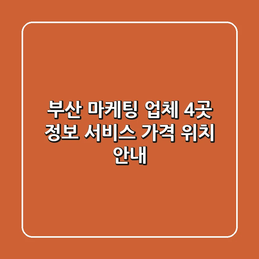 부산 마케팅 업체 정보, 서비스 종류, 가격 안내 등 궁금하셨던 내용들을 명확하게 제공하여, 만족스러운 업체 선택을 지원합니다.